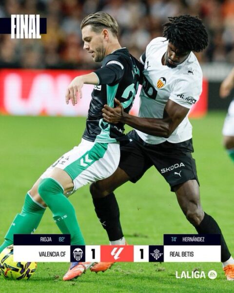 El Real Betis tuvo la victoria en su mano, pero perdonó demasiado. Mestalla rugió en el tramo final y el Valencia CF encontró oxígeno gracias a un gol salvador de Luis Rioja. El empate deja a los de Carlos Corberán hundidos en la tabla, pero con una vida extra antes del parón.